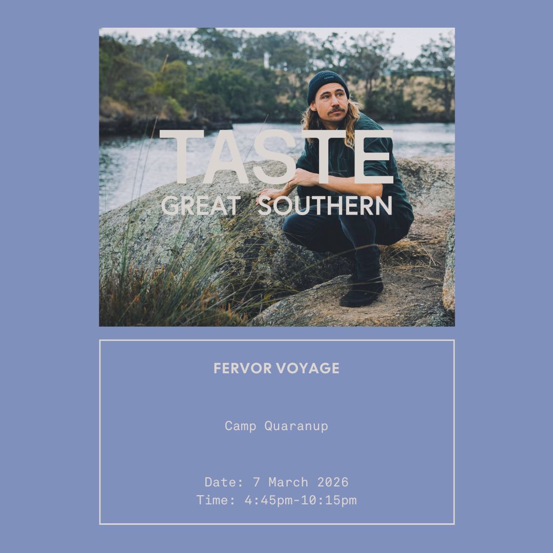 Set sail for an adventure of flavour and conversation with Fervor. Meeting at Albany Harbour, step aboard the Silver Star II, for an evening gliding across the Southern Ocean, before arriving at the historic Camp Quaranup to a table set overlooking the endless stretch of blue beyond. Awaiting you is a table set above the sea, where Chef Paul Iskov has crafted a five-course tasting experience inspired by his deep love of the region including Albany Rock Oysters. Joining Paul is friend and winemaker Andrew Hoadley of La Violetta, with wines blended from regional knowledge and creative spirit, to accompany your evening feast.