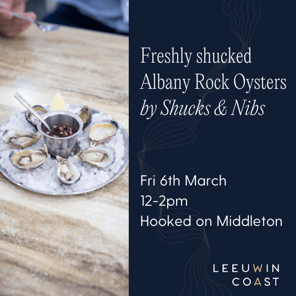 There will be an oyster shucking station from 4pm - 7pm with our mates at Shucks & Nibs serving up freshly shucked Albany Rock Oysters - $24 for 1/2 Dozen, $45 for Dozen. While stocks last so get in quick!